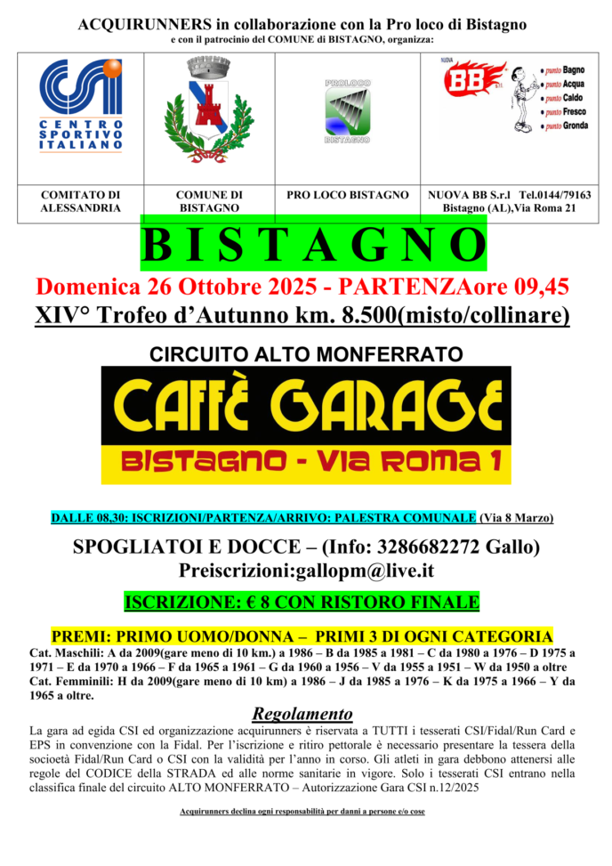 In questa domenica senza gare in provincia alcuni Verdenero hanno espatriato: Tato Damiano Guida,Angelo Borello e Giuseppe Braggio a Valleandona nell'astigiano per una gara classica e storica mentre il sottoscritto e il presidente Roberto Pola in terra ligure più precisamente a Rossiglione per la prima edizione de1^lla Stra-Rsciugni (bella gara a mio parere ma discretamente tosta)